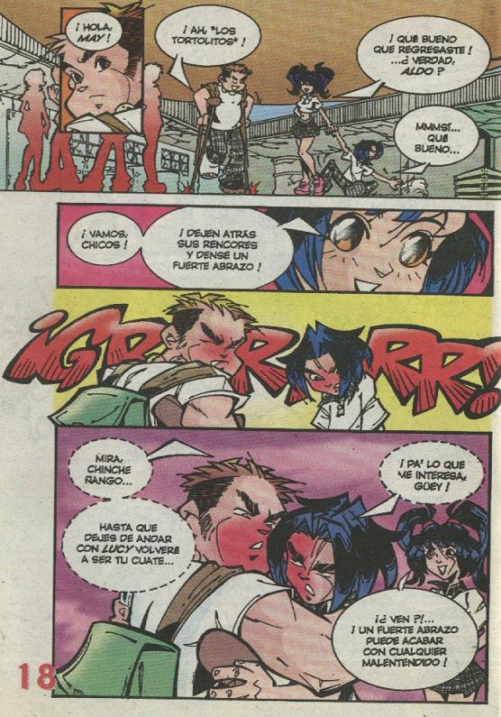 Jackie y Pili siguen haciéndole burla a Eva porque Lucy le bajara a Aldo pero ella insiste en que Meteorix es su único amor. Al sugerir Pili que debería pelar al May, siendo defendido luego luego por Jackie, Eva se da cuenta del interés de su amiga, considerando utilizar eso para su venganza (pero no parece que lo haga nunca).